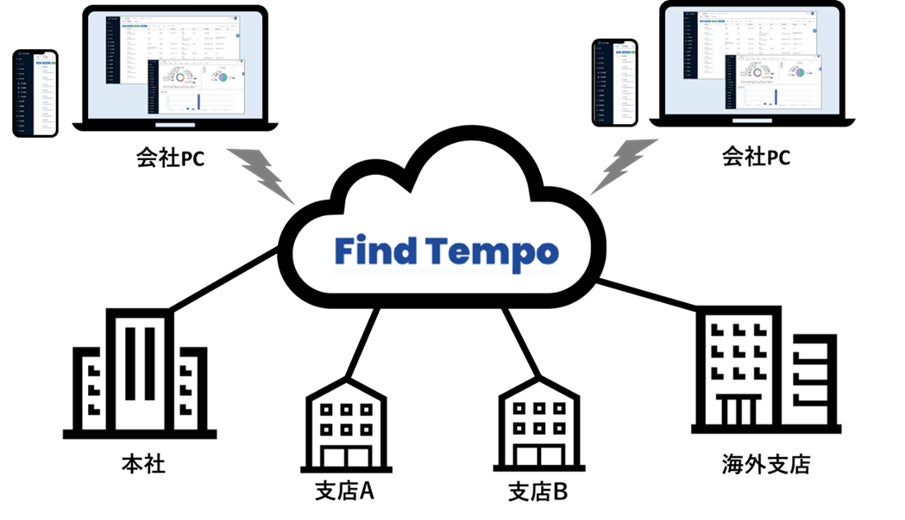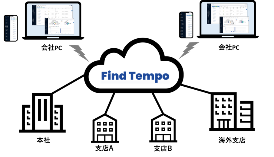 ・各地に点在する拠点における資産管理をクラウド上の「FIND Tempo」で行います。