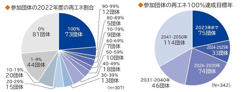 ●2022年度は73団体が再エネ100%を逹成した。再エネ100%達成団体は毎年増えている。