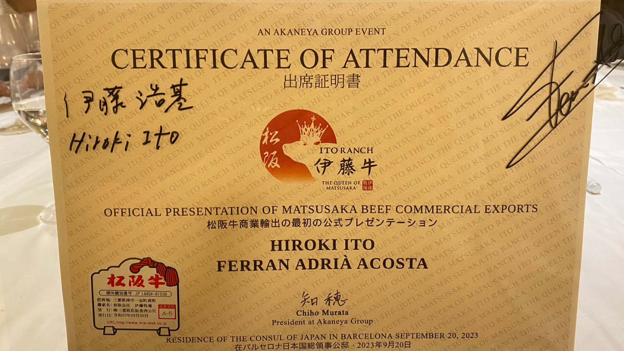 究極の松阪牛を追求してきた伊藤牧場は、これまでの努力が実り、日本国内で高い評価を受け、その品質が認められることとなり、究極の松阪牛を育てることは5度の最優秀賞一席の受賞によって揺るぎないものとなりました。そして今、世界がこの伊藤牧場の松阪牛に熱い視線を送っています。特にヨーロッパでは、スペイン・カタルーニャの世界的なシェフであるFerran Adriài Acosta氏がバルセロナの領事館公邸で行われた試食会では、世界最高の牛肉と認めました。
