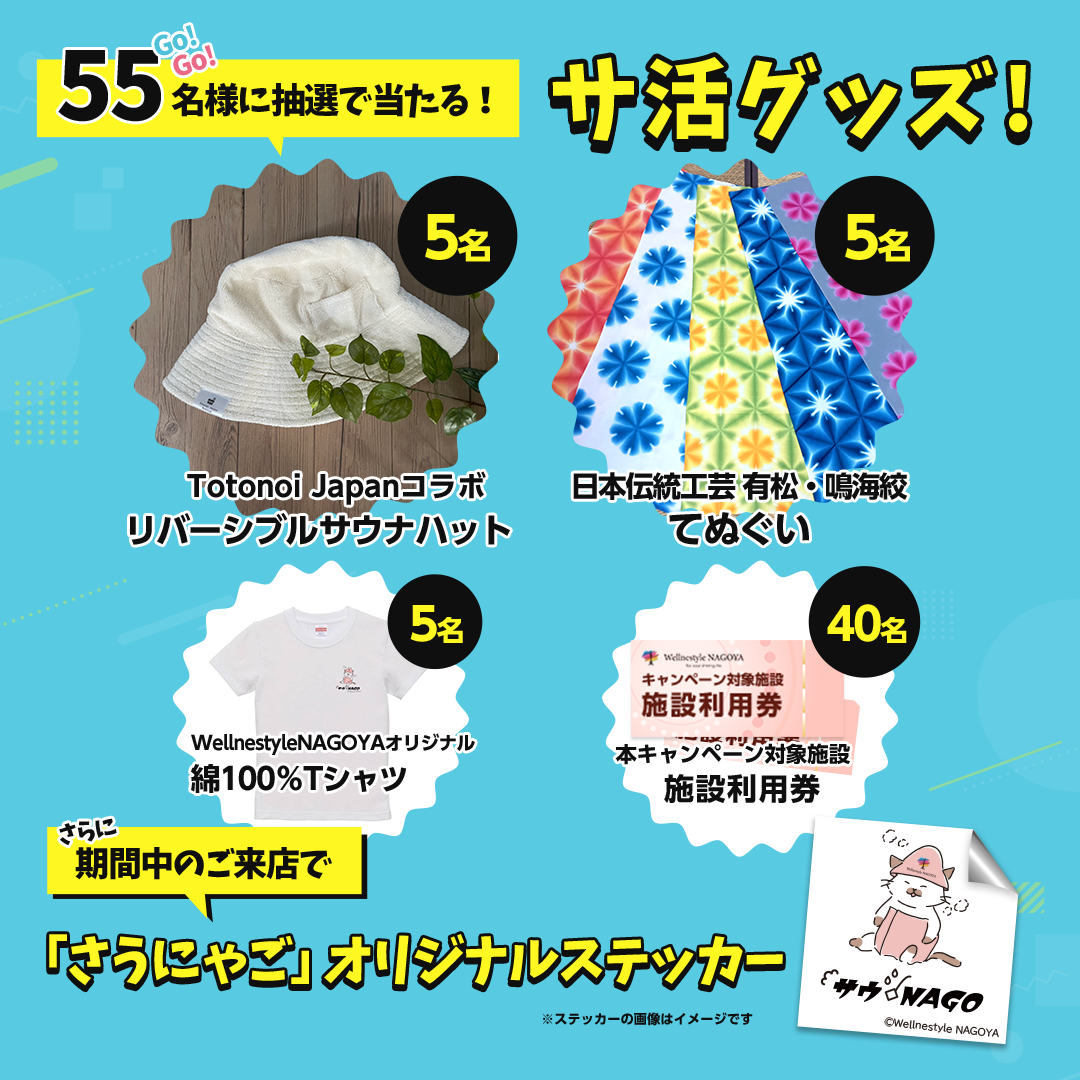 詳細は、キャンペーンサイト(https://wellnestyle-nagoya.jp/saunago/)にてご確認ください。
