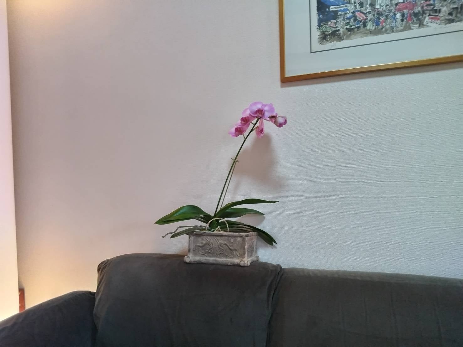 テレビの横に置きっぱなしでいつでも美しい胡蝶蘭が楽める。