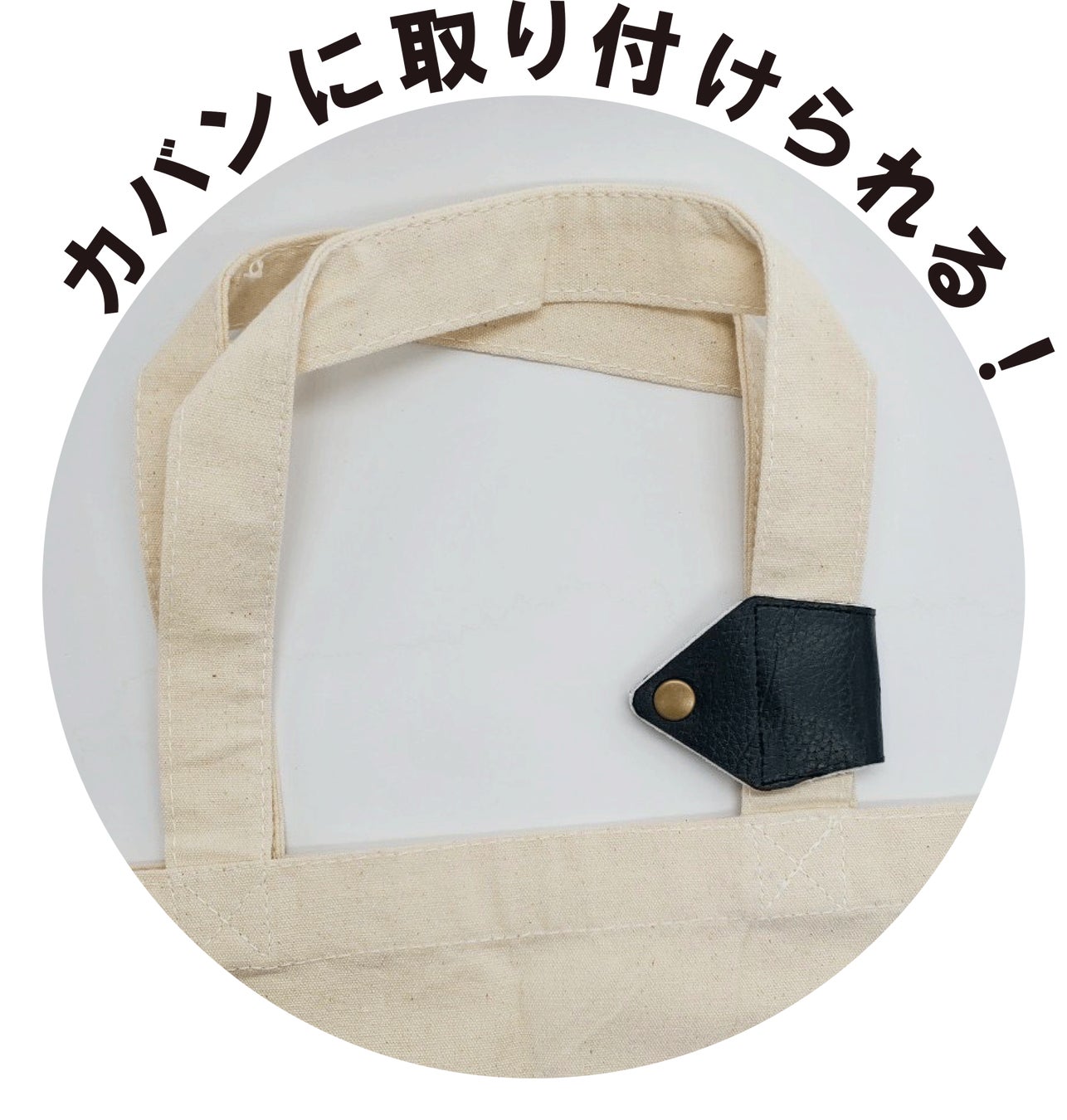 また、太めのショルダーバッグにも付けられるサイズ感とボタン構造となっているため、持ち運びや取り外しも簡単です。