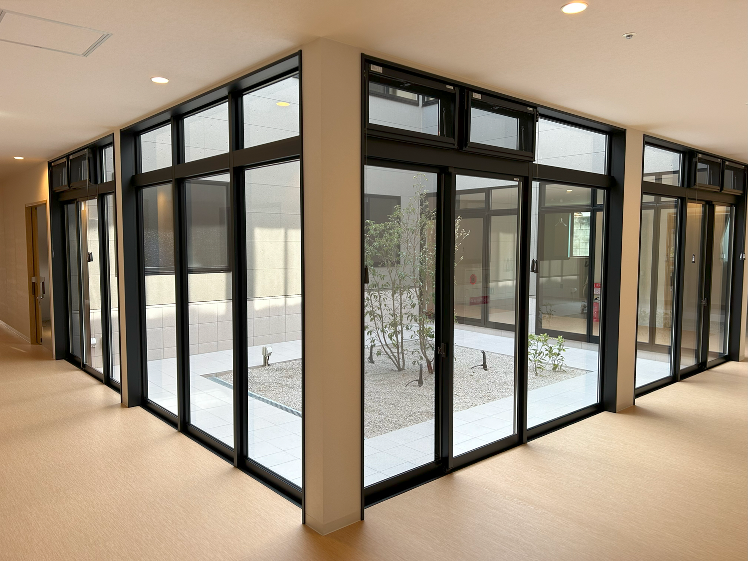 ご家族やご友人とのつながりはもちろんのこと、地域に住まう方々とのつながりまで日常的に感じられる、開かれた場としての共用スペースも併設。地域包括ケアにつながる拠点としての役割になれることを目指します。
