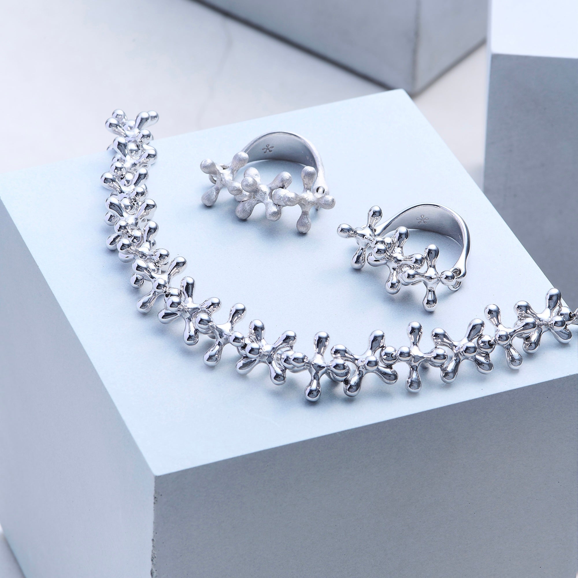 6ポッドの立体的なパーツをユニットとし、リングとピアスも展開。