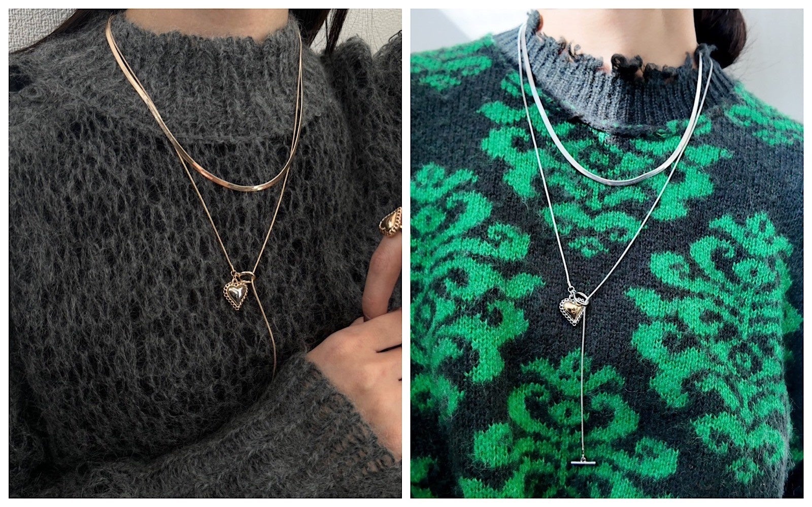 LOHMEで大人気のハートシリーズに、STUDIOUSらしいモードなエッセンスを加えて。ラグジュアリーなチェーンネックレスは、エレガントにもカジュアルにもフィット。