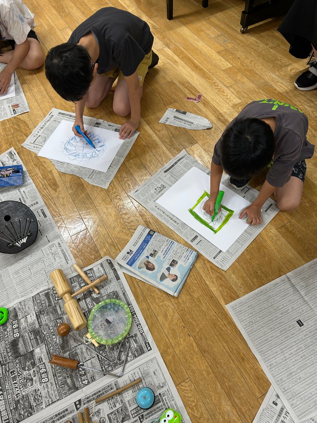 ビニール袋や木の卵を使い、「音を出さずに集中する」活動を実施。静けさの中で音を“聴く・待つ”ことに意識を向けることで、感性と創造性を深めました。