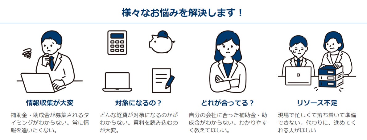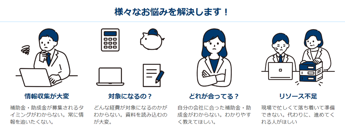 一方、補助金情報はいつ発表されるかわからず、また、掲載サイトも多岐に渡るため、事業者が独自に探すのは容易ではありません。