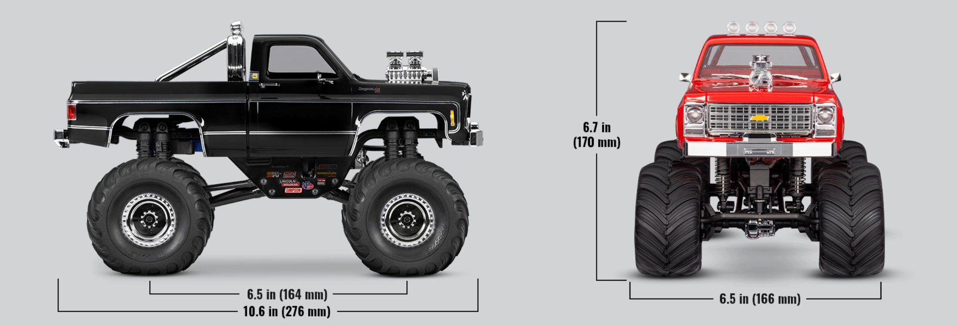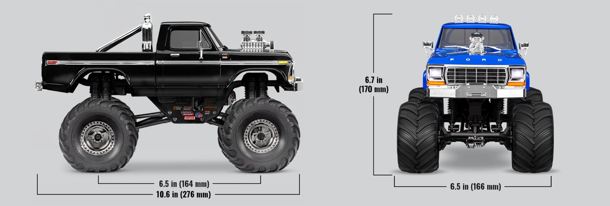 8 つのショックと大型のTerra Grooveタイヤを備え、取り付けられたロング アームリフトキットは、TRX-4MTに比類のない能力と高い最低地上高を実現しました。非常に詳細なフォード F-150またはシボレー K10ボディを備えたTRX-4MTは、どこにでも持ち運べる便利なサイズで本格的なモンスター トラックのパフォーマンスを発揮致します。