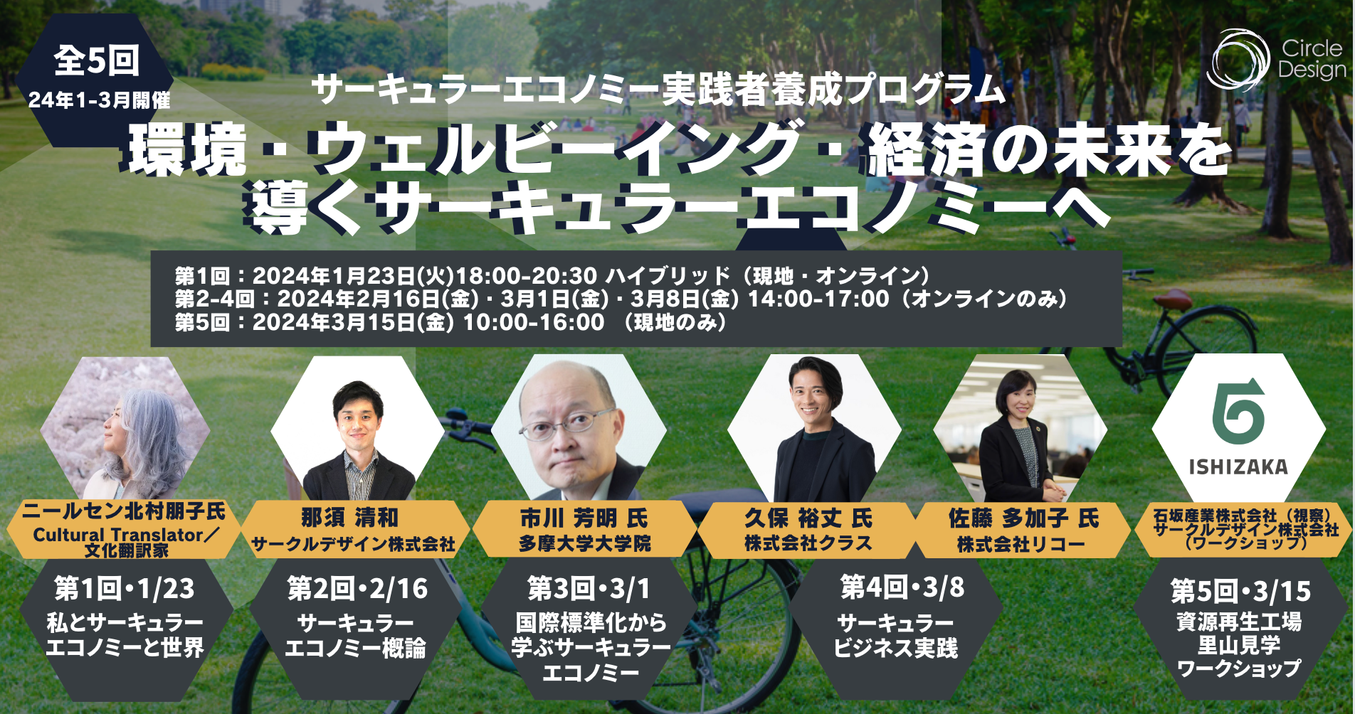 サーキュラーエコノミー実践者養成プログラム「環境・ウェルビーイング・経済の未来を導くサーキュラーエコノミーへ」、24年1月〜3月に実施