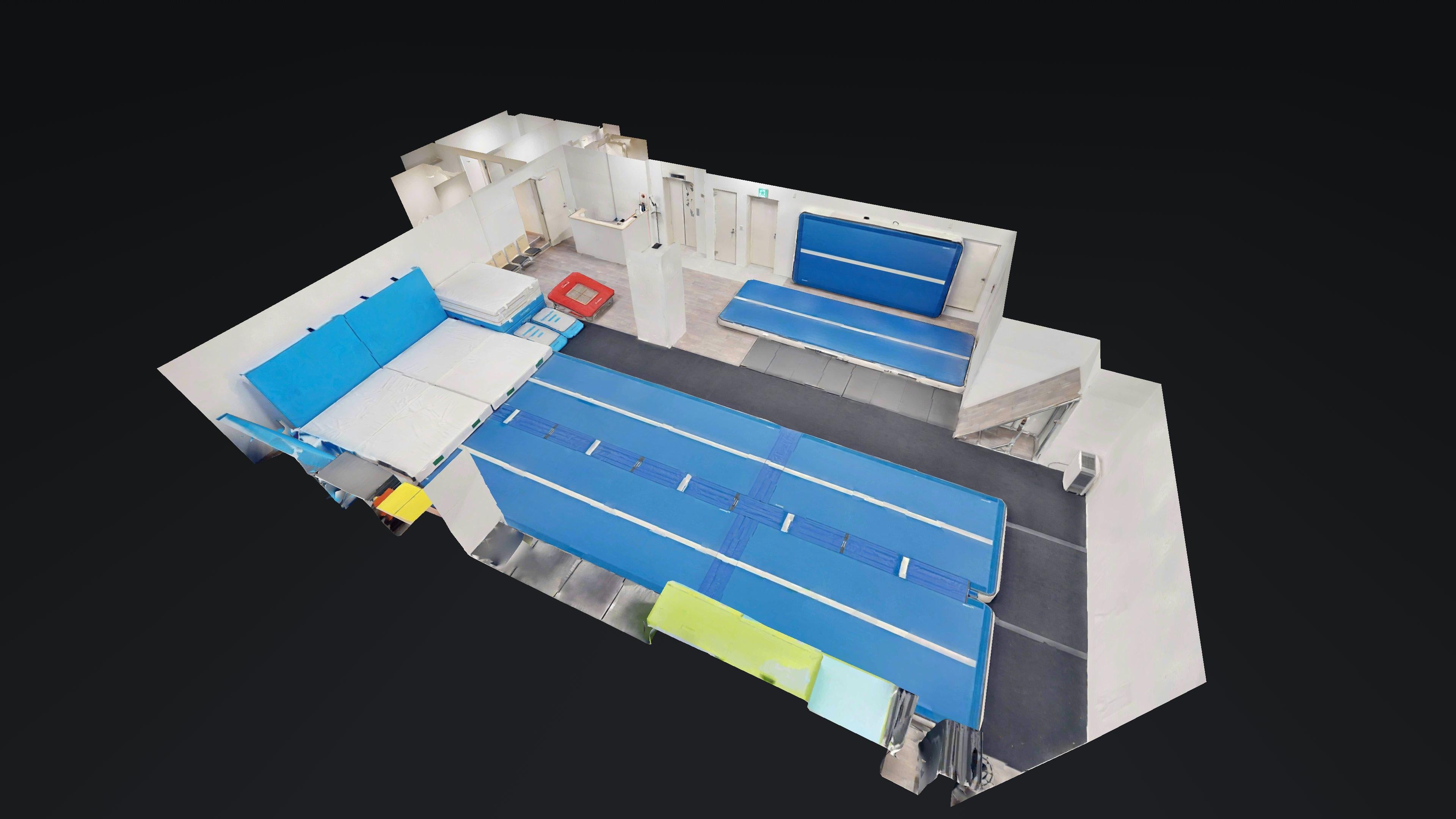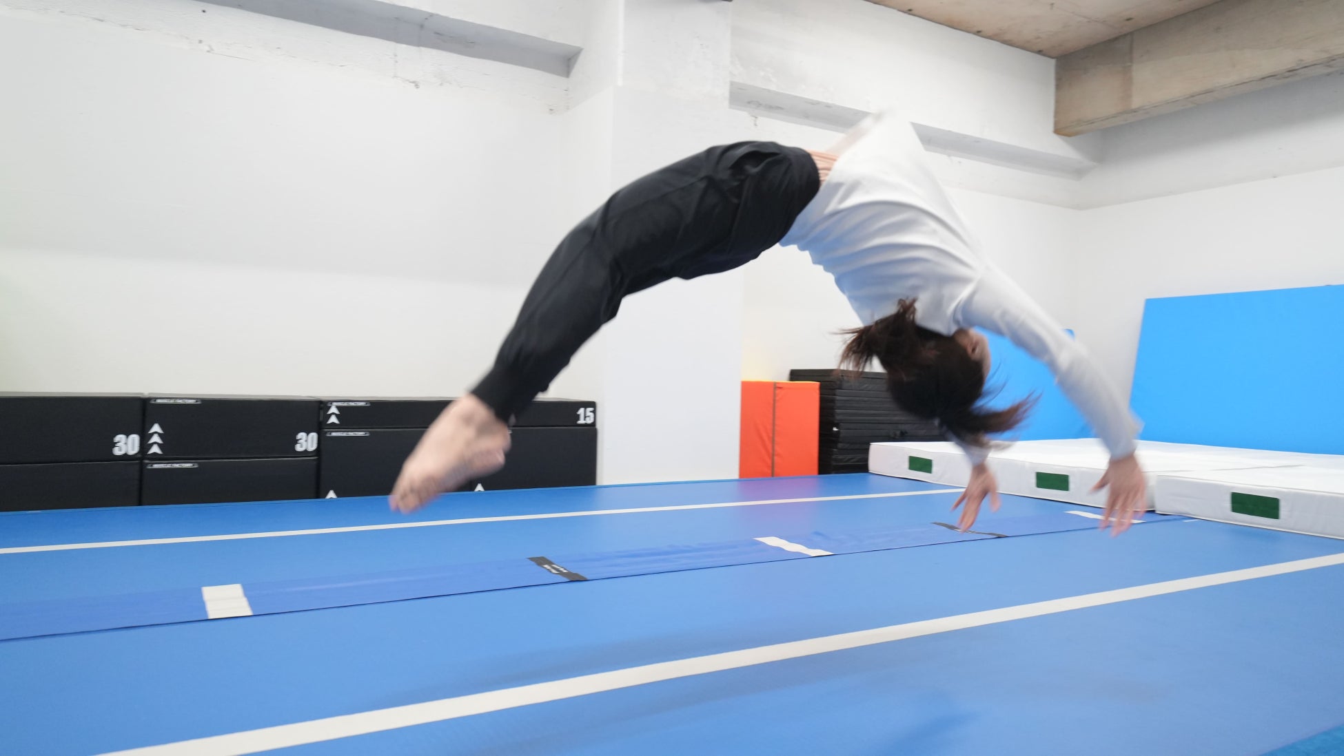 都内でも最高クラスに充実した設備もこだわり。同店ではオランダのマットメーカー・エアトラック ファクトリー社が手掛ける”エアマット”を主に使用しております。このマットはトランポリンのように柔らかくよく弾むため非常に安全性が高く、怪我のリスクを最小限に抑えてアクトバット/パルクールの練習が可能。そのほかミニトランポリンやセーフティーマット、ソフトボックスなども完備しており、バラエティ豊かな練習が行えます。さらに、エアボードブースト(空気を注入した最新式のロイター板/写真2枚目)と呼ばれる希少な機材も導入。館内には動画用のカメラ&モニターを設置しており、実際に自身の動きを確認しながら技の練習を行なっていくことができます。そして講師陣は大会受賞経験者や現役パフォーマーなど、アクロバットやパルクールに精通したプロフェッショナルが数多く在籍。効率的かつ安全な上達をサポートいたします。