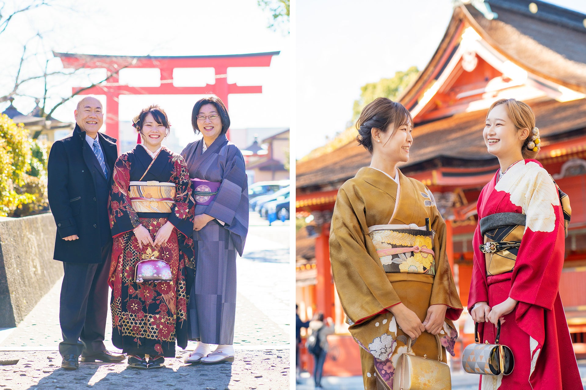 撮影場所は地元の方々に親しまれ、世界文化遺産でもある富士山本宮浅間大社。数十年経っても色あせない、ご家族やご友人のあたたかみと故郷を感じられる写真をお撮りします。