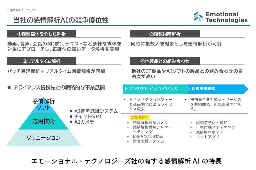 事業内容: 感情解析AIを活用した製品、サービスの開発・販売、感情解析AIを活用した各種コンサルティング、感情解析AIを活用した感情分析・マーケティング業務