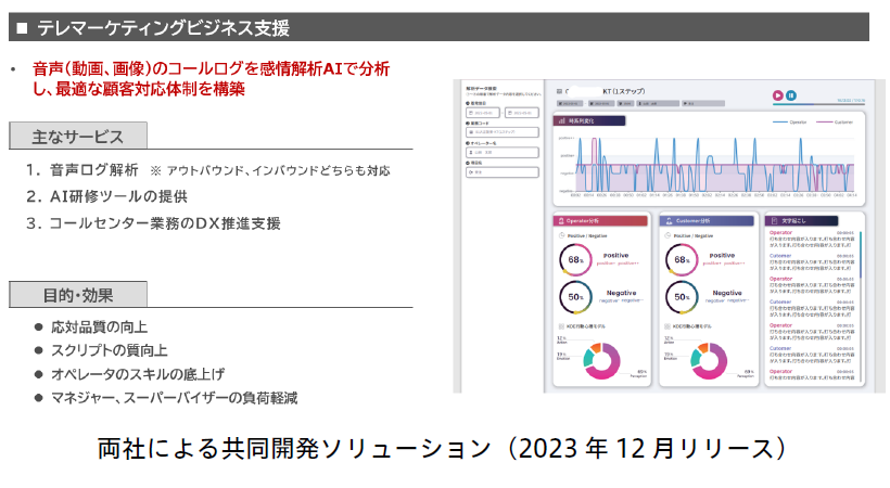 2023年12月から両社でのリリースを開始し、感情解析搭載各ソリューションを通じた各種コンサルティングの提供も併せて行ってまいります。