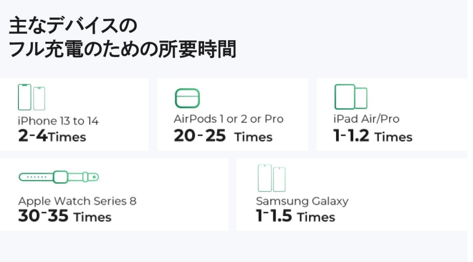 最適な電力出力で充電し、最短1時間で100%まで充電してくれます。