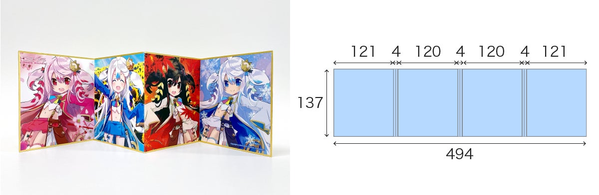 ミニ色紙の約4倍サイズ。屏風のような個性的な仕上がりが特徴です。