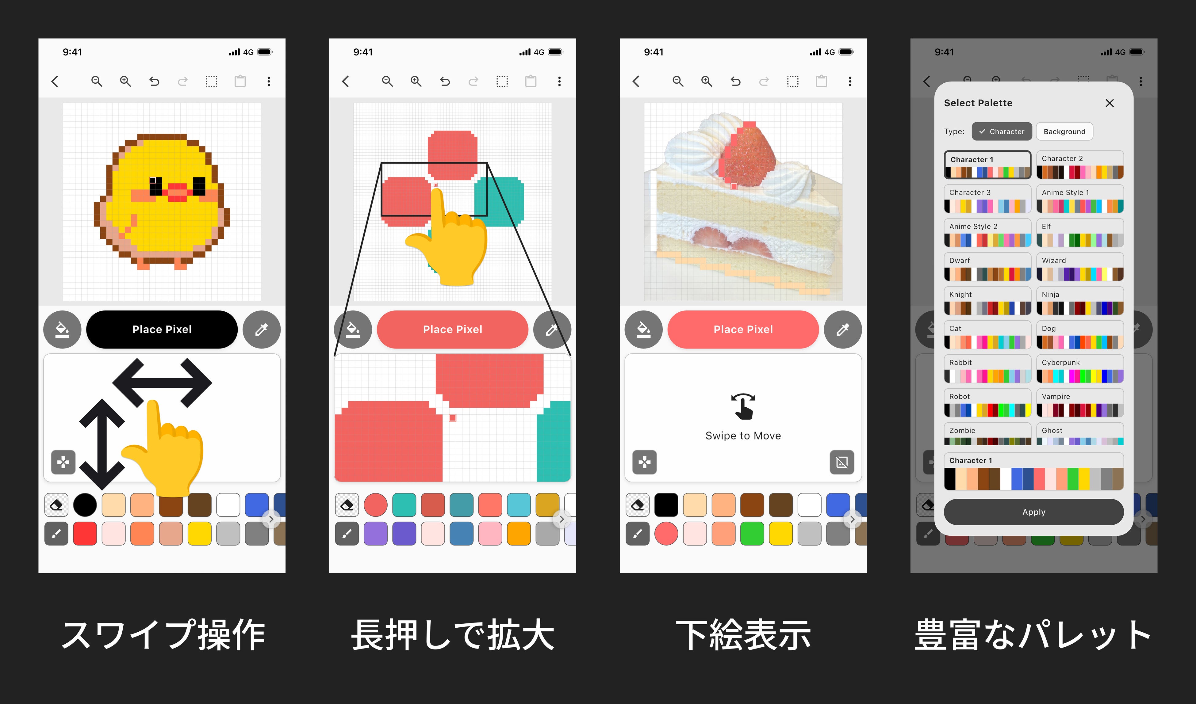 〜独自のスワイプ操作と虫眼鏡機能で、小さな画面でも繊細なピクセルアートが制作可能〜