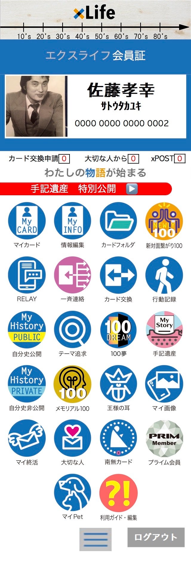 シニアの今だから言える、若い頃からやっておけば、記録しておけばの自責の念、この想いから企画し誕生したのが、ライフパートナーとして一生涯利用し自分を支え続けるクラウド型ITサービス「xLife(エクスライフ)」で、私たちの社会への最後のご奉公でもあります。