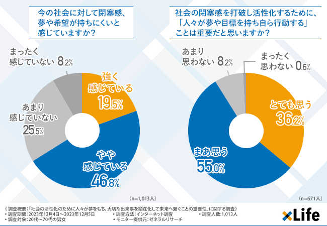 今の社会に閉塞感を感じる方が多数!約9割が現状打破には夢や目標が必要と回答