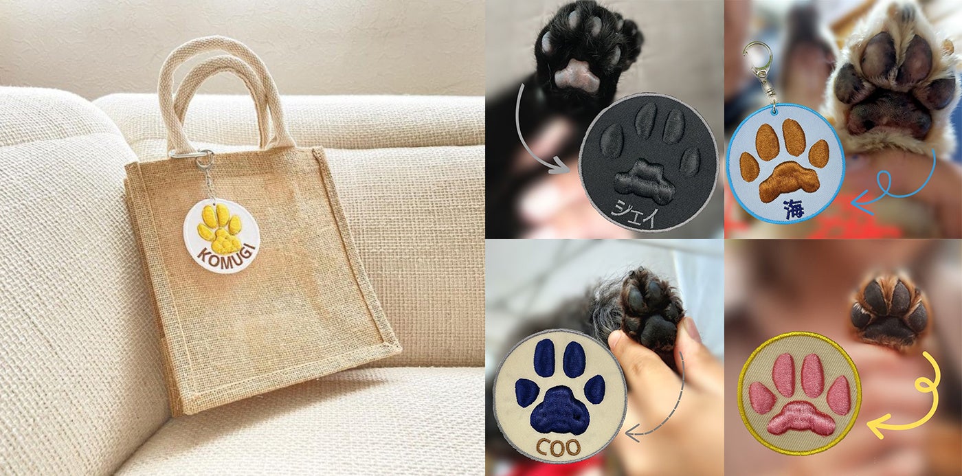 愛犬、愛猫の肉球をかたどった「お手手ワッペン」は、ぷっくりとした立体的な仕上がりになっています。