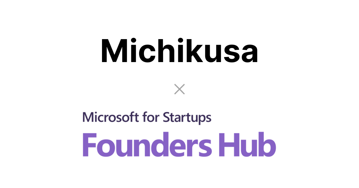 Michikusa株式会社(本社:東京都目黒区下目黒1丁目1番14号コノトラビル7F、代表取締役:臼井拓水)は、マイクロソフトコーポレーション(本社 : 米国ワシントン州、「以下マイクロソフト社」)が提供するスタートアップ支援プログラム「Microsoft for Startups Founders Hub」に採択されました。