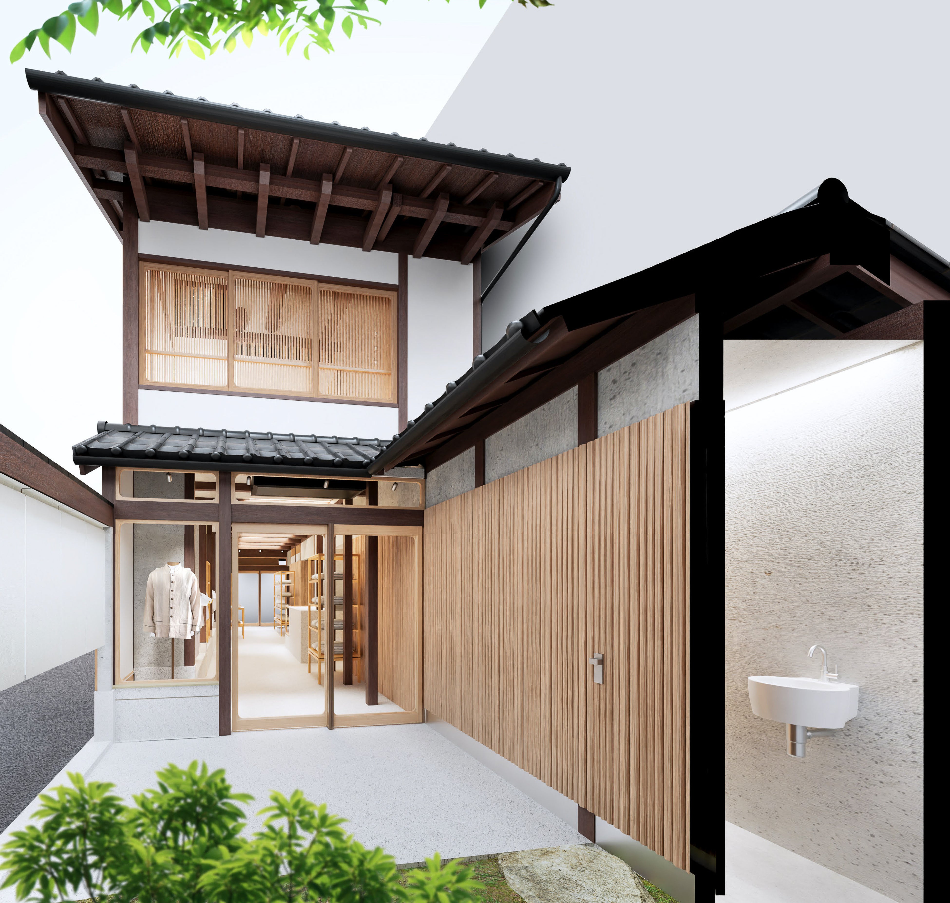 空間デザインは京都の建築設計事務所「ムーンバランス」、施工は住宅の新築からリフォームを手掛ける当社の建装部「素家(そや)」が担当。 京町家を改装した、京都らしい洗練されたインテリアの中で、ショッピングできるショップとなっています。