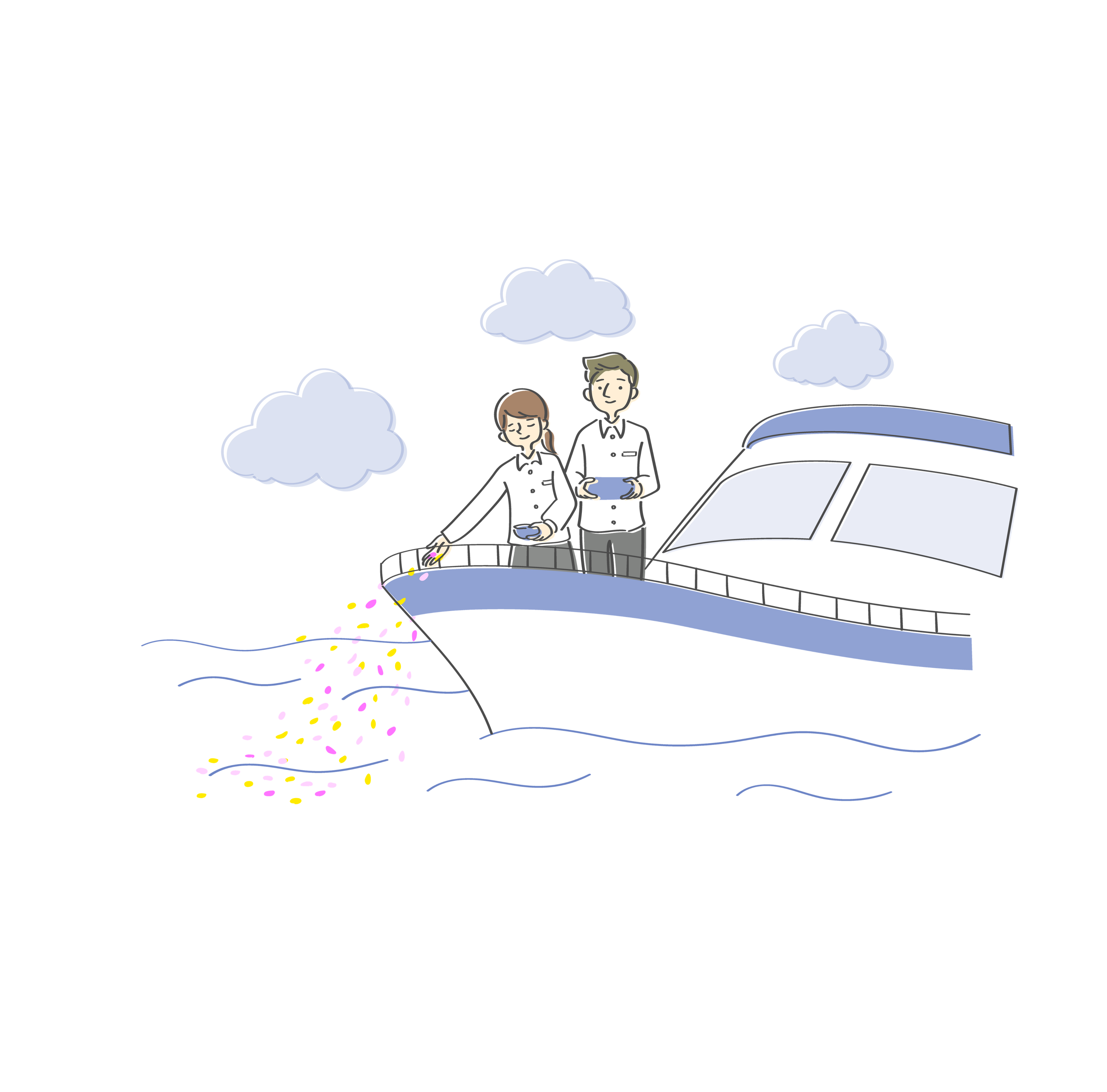 納骨先は福岡3寺院、熊本1寺院、鹿児島1寺院から選ぶことができ、海洋散骨は鹿児島湾や博多湾をはじめ、全国の海で実施可能です。思い入れのある場所、憧れの土地、生まれ育った地元などでの散骨希望にも対応致します。遺骨のプロが寄り添って丁寧にお申し込みから納骨、海洋散骨までお手伝い致します。
