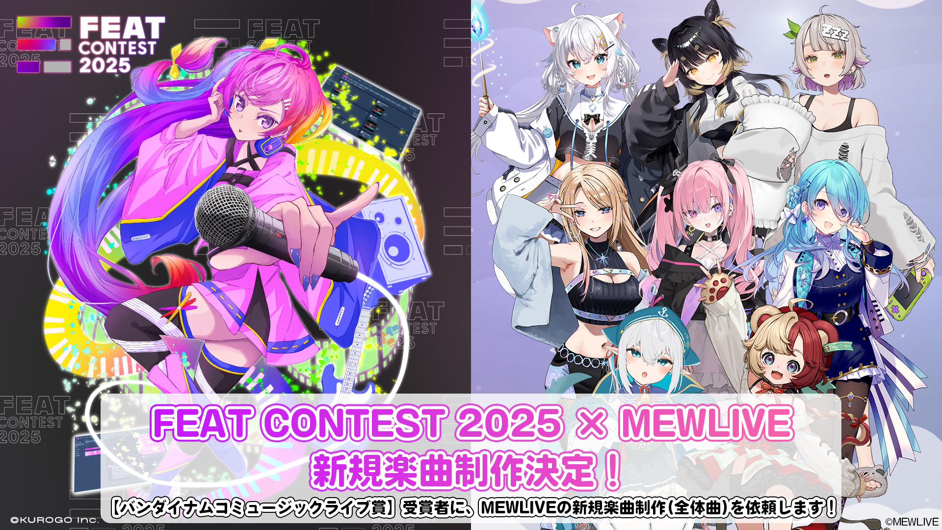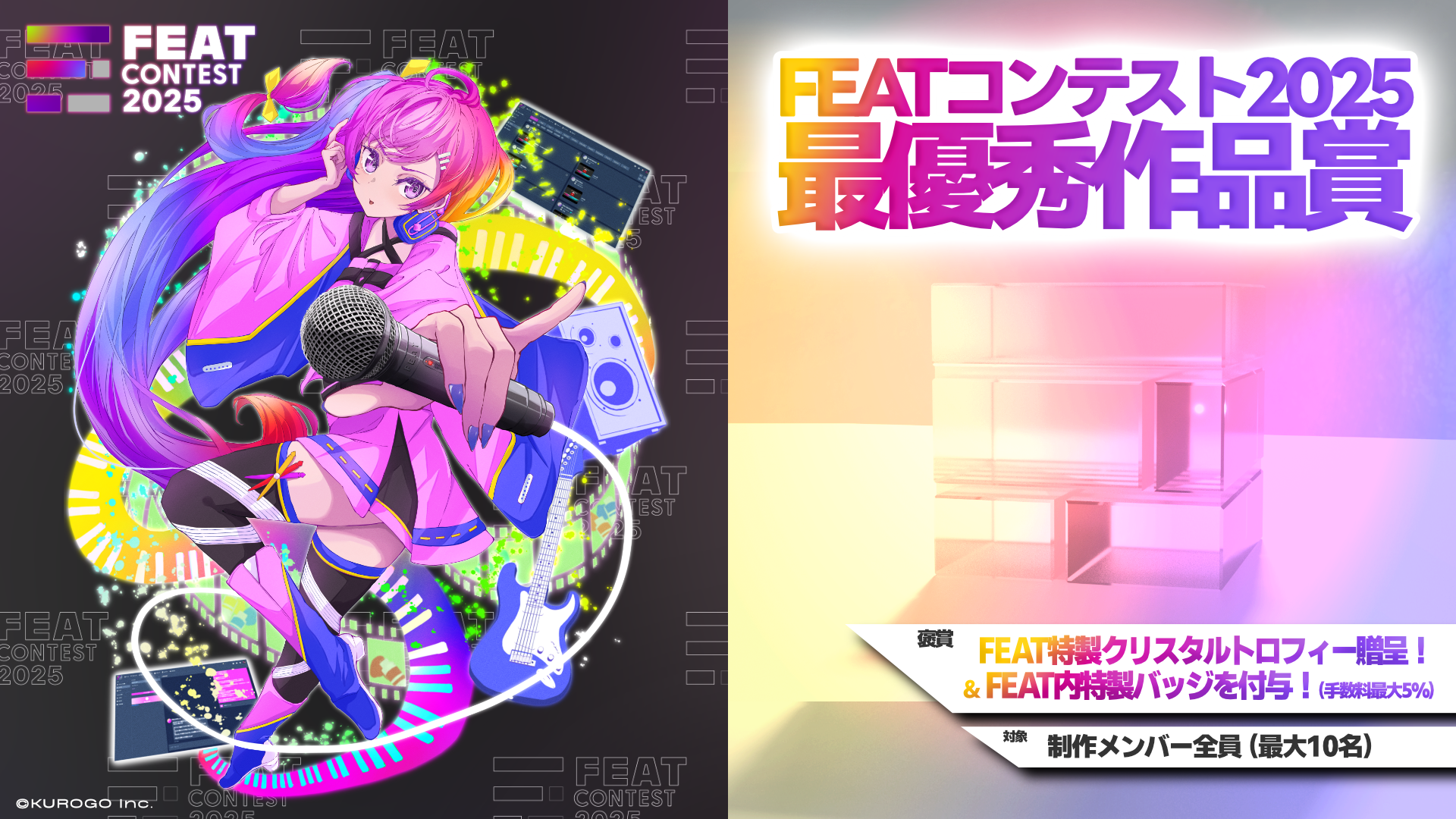 クリエイターファーストの新しいコラボプラットフォーム「FEAT」を運営するKUROGO株式会社(本社:東京都中央区、代表取締役:工藤 吟、以下「KUROGO」)は、昨年大盛況となった歌モノ楽曲コンテスト「FEAT CONTEST 2025」を、2025年10月1日より開催することをお知らせいたします。
