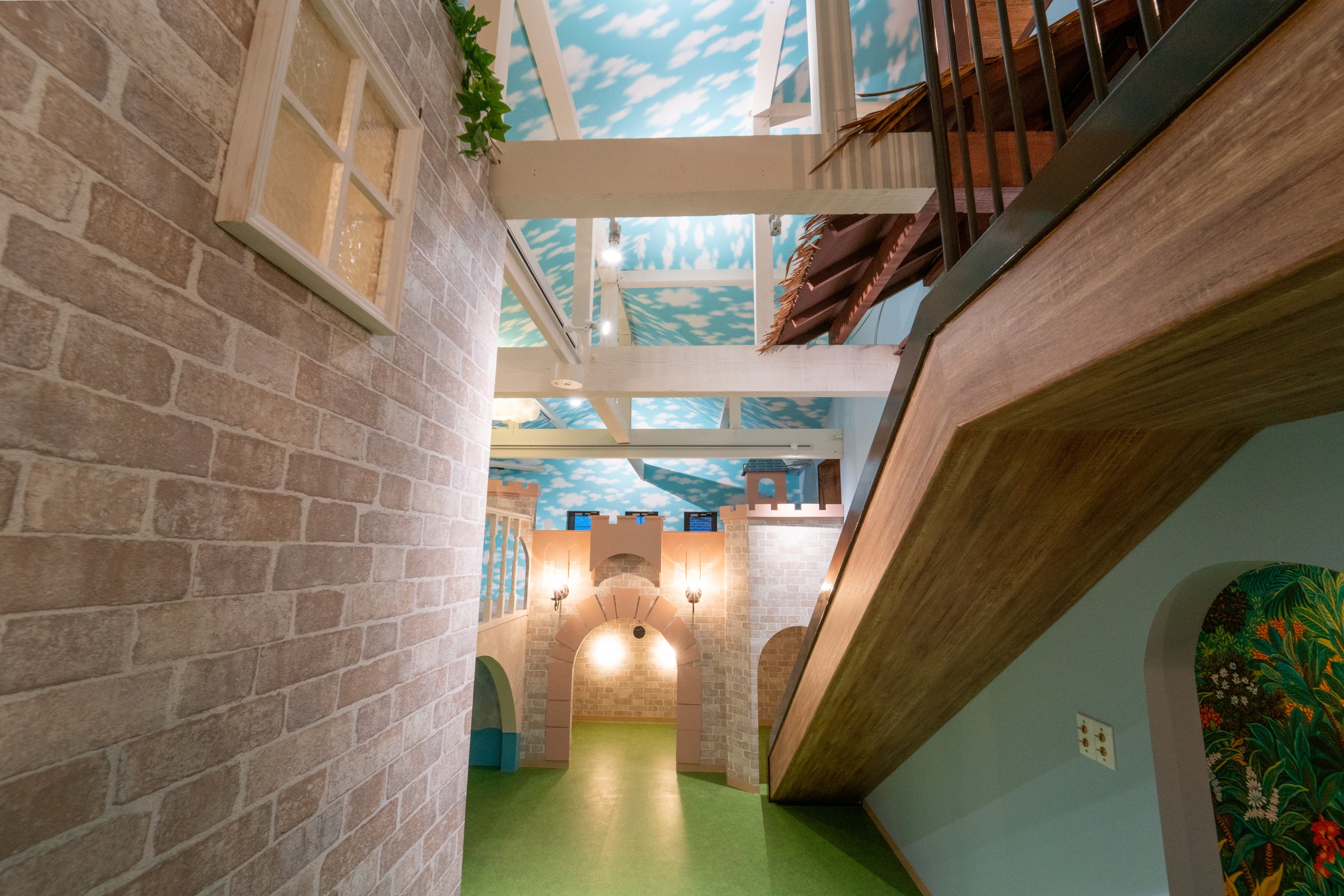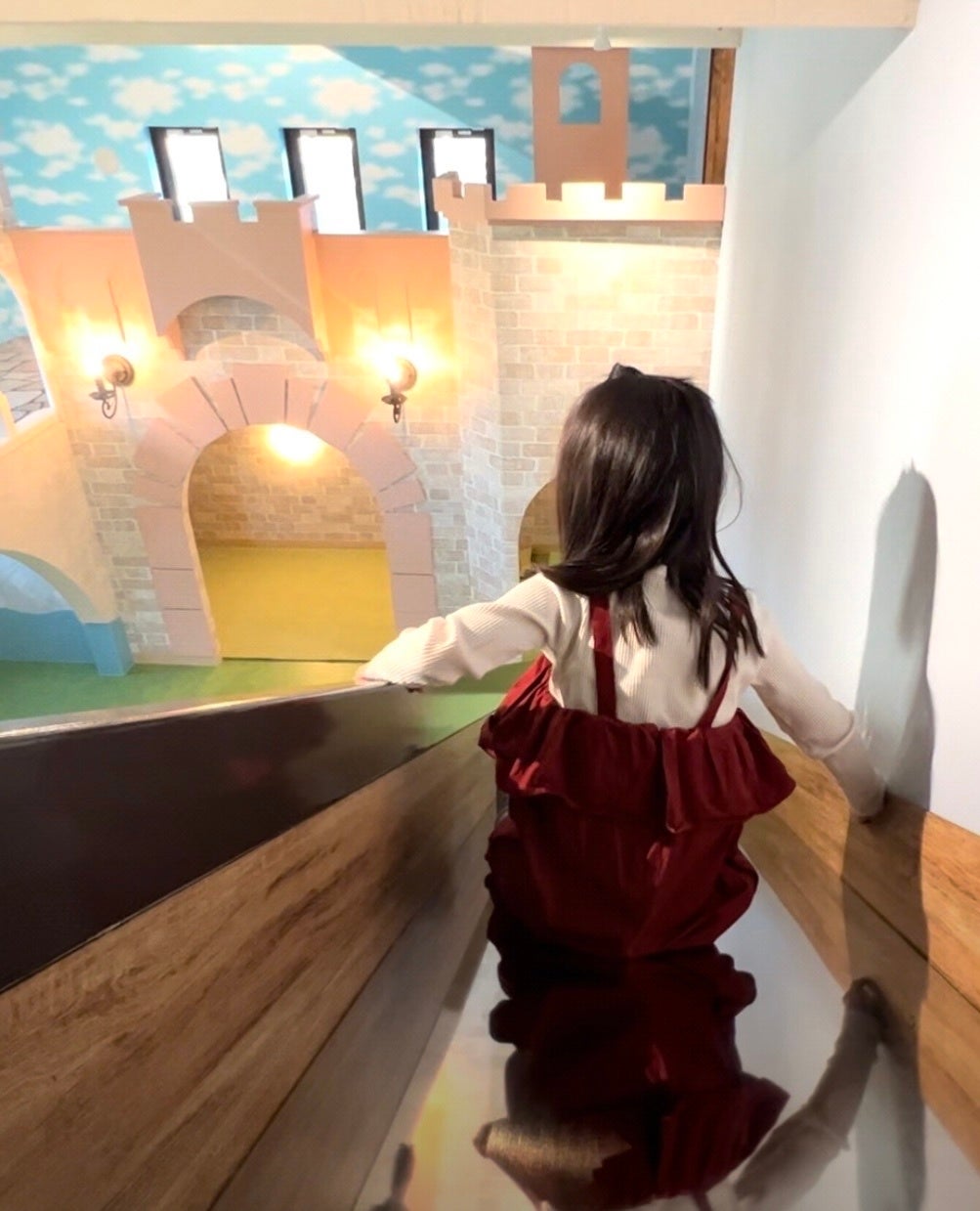 滑り台からお城にダイブなど、身体を動かして遊ぶことのできる室内遊び場併設ホテルです。