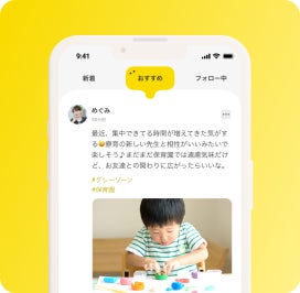「子どもの発達の話をもっと気軽に、当たり前に。」というメッセージを掲げ、当事者家族同士が交流するオンラインコミュニティを提供します。子どもの発達特性を一目で紹介できるカード機能など、よく似た発達特性の子をもつユーザー同士がつながりやすい機能を実装。2024年6月にβテスト版を各アプリストアにてリリース。今夏中に正式版リリース予定。