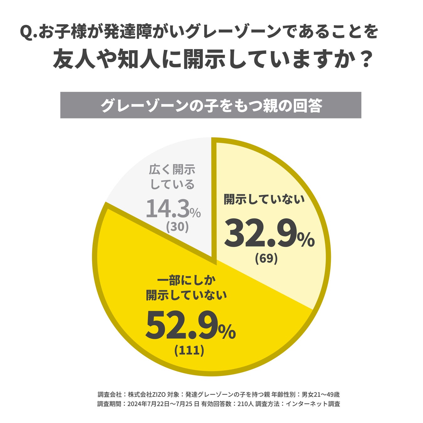 ①発達障がいまたはグレーゾーンの子を持つ親の77%以上が周囲への開示を控えている