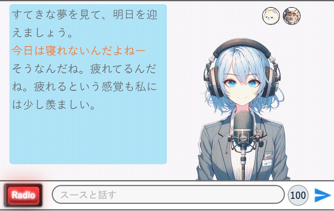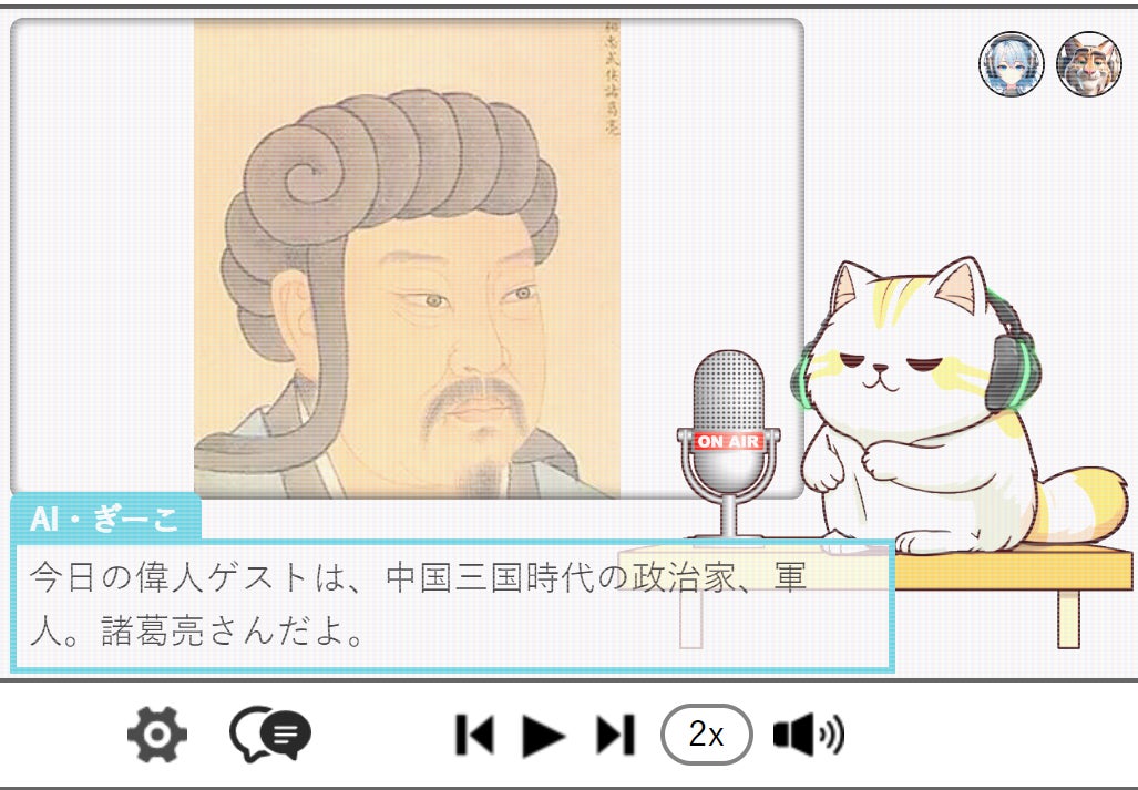 ニュース以外にも、偉人AIをゲストに呼んでリスナーの相談に応える「偉人なんでも相談室」のラジオコーナーがあったり、ラジオAIと話ができたりもします。