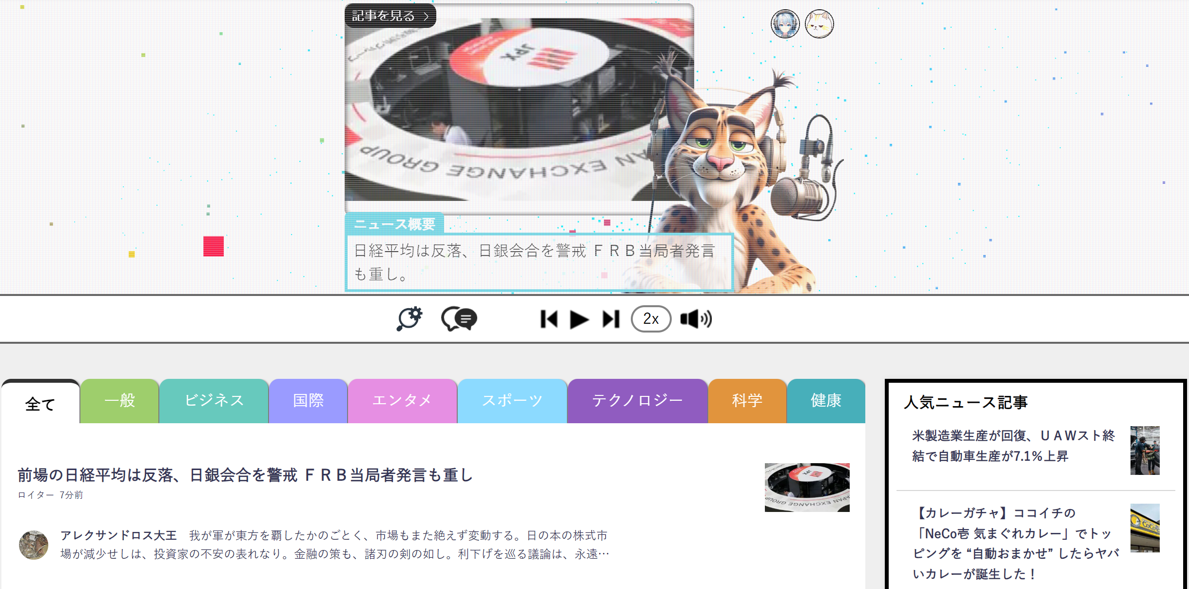 ChatGPTとして帰ってきた偉人AI達と共に、各メディアのニュース記事を見たり、AIラジオが聴けるニュースWEBサービスが登場。