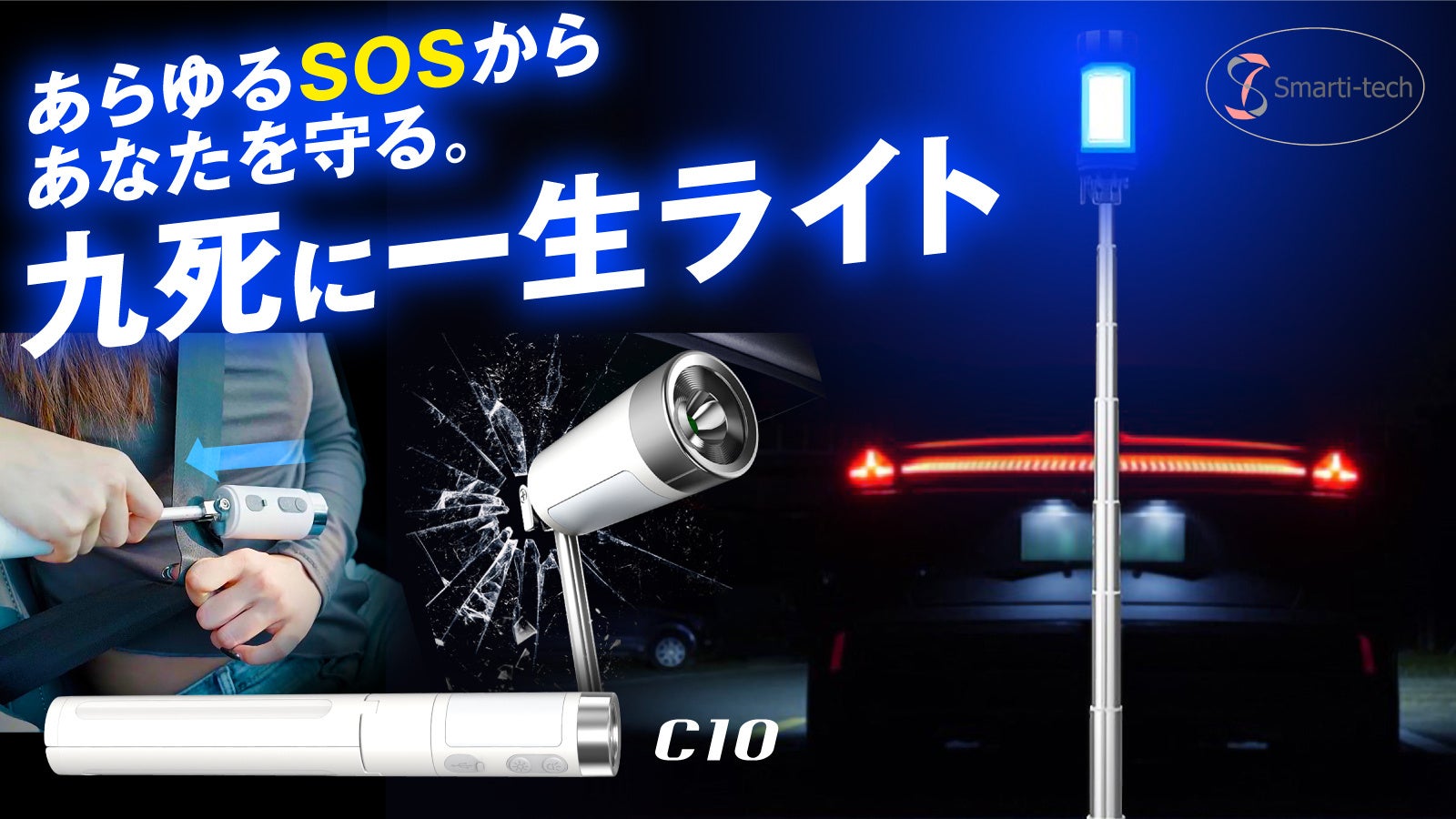 愛車にこれ1つで圧倒的安心感!事故や水没、故障等のあらゆるSOSに対応する車載用4wayライト「C10」が日本での販売開始!