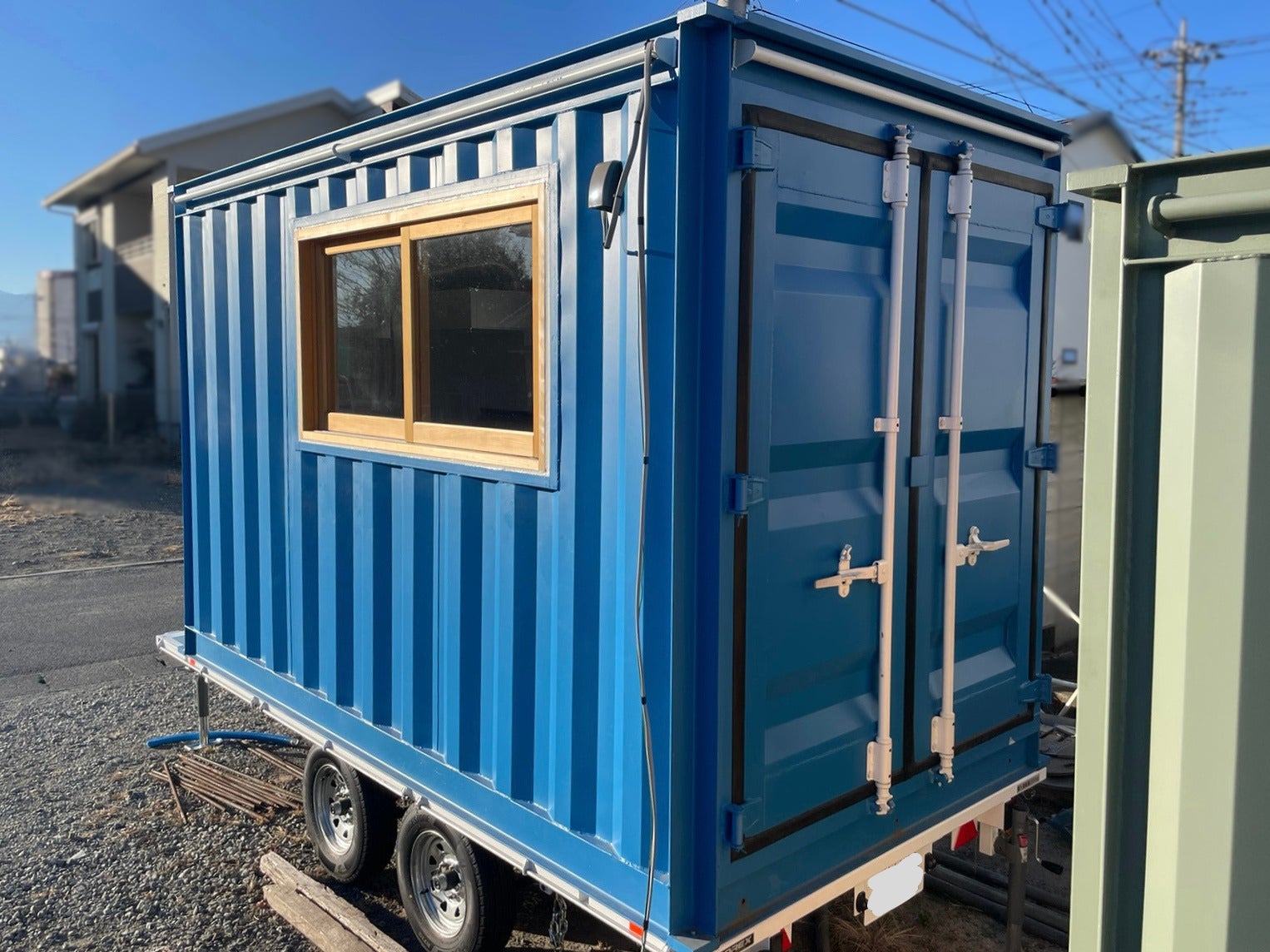 今回展示いたしますのは、駐車場1台分のスペースに収まるオリジナルサイズのコンテナトレーラーです。車両扱いとなるため、建築物が建てられない狭小地やお庭のスペースにも堅牢で快適な空間を作ることができます。空き駐車場のビジネス活用ツールとしてもお勧めできる製品です。