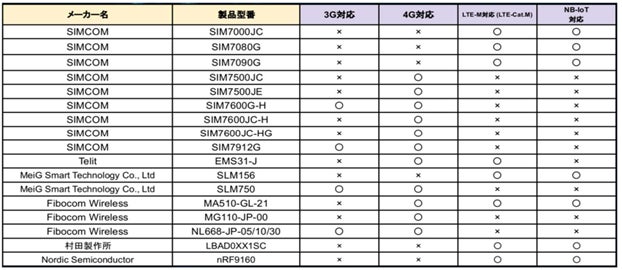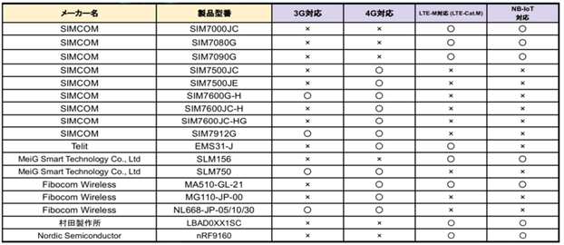 #3G及びNB-IoTは国内での使用が非対応となりますのでご了承ください。詳細は担当者にお問い合わせください。