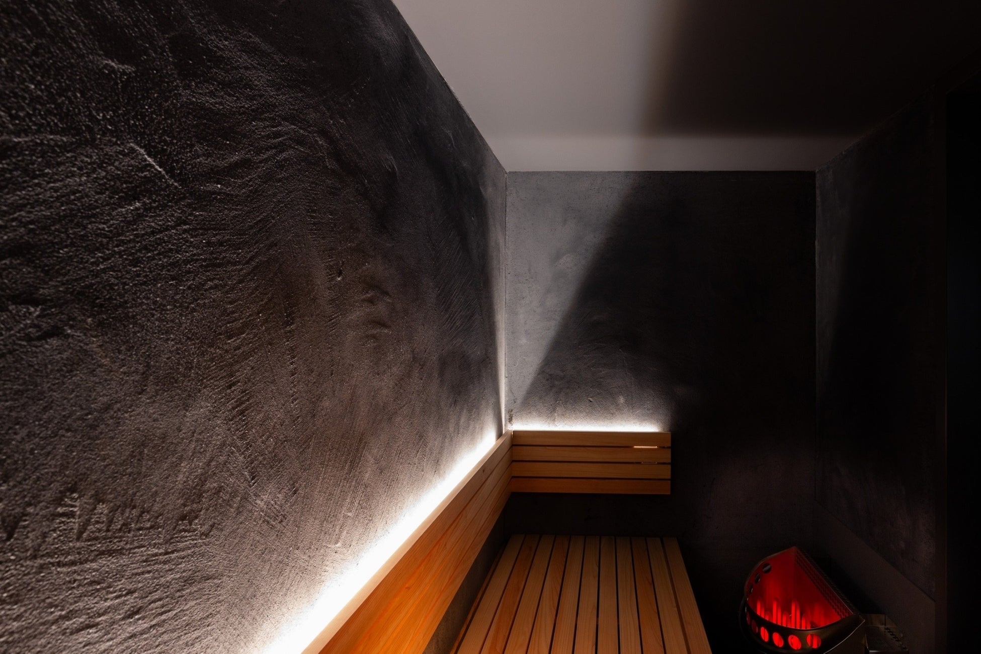 ひのき香るウッディなサウナ空間はリラックス効果抜群です。個室サウナでは広めの2m超えのサウナベンチは、寝る、座る、あぐらをかく、といった様々な寛ぎ方が可能なように設計されており、2トーンからなるお部屋もその日の気分でお選びいただけます。