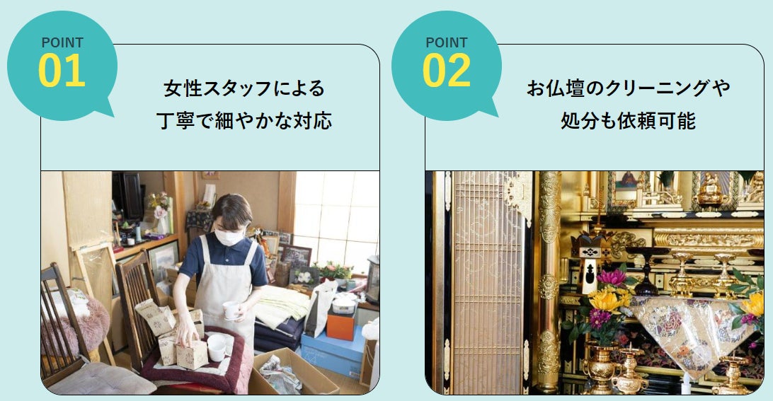 「大切な人との想いでを大切にしよう」という仏壇店ならではの、ご遺族の心によりそうお片付けをいたします。