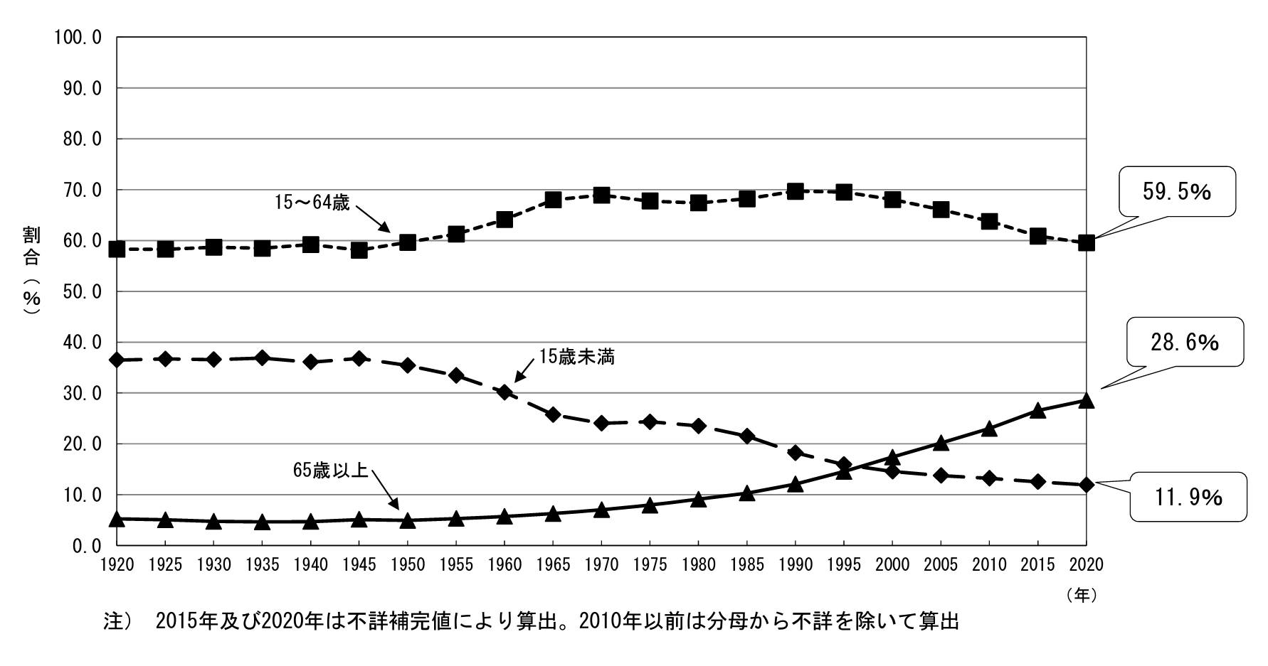 65歳以上人口は30%に迫り高齢化が進む(引用元:令和2年国勢調査 人口等基本集計結果)