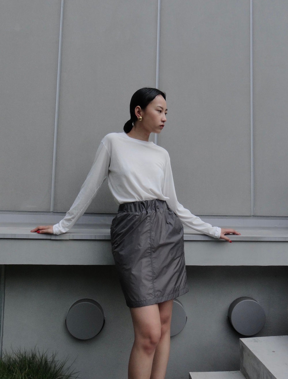 上質なスタンダードワードローブを追求するSEVENROOMSでは、定番のカットソーシリーズをベースに、ハリのあるスーチング生地で見せるスポーティーなウェアと、透け感が美しいナイロンのシリーズを加えたコレクションを公開します。