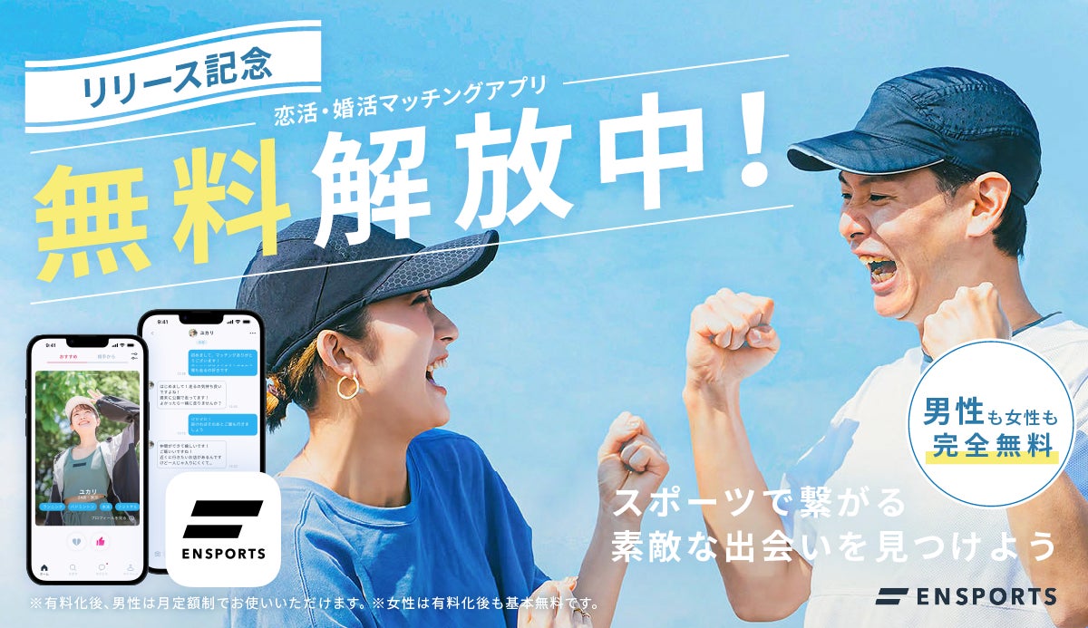 このたび「スポーツでつながる出会い」をコンセプトとした、スポ活・恋活・婚活マッチングアプリ『ENSPORTS(エンスポーツ)』のリリースが決定いたしました。