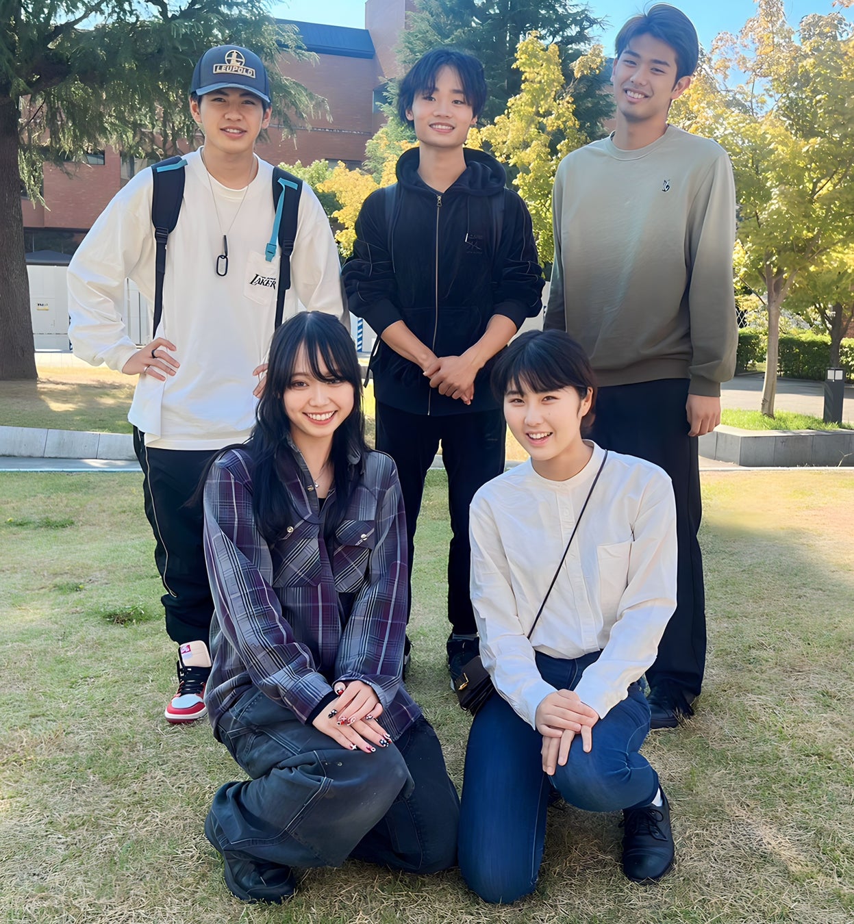 禰宜田侑誠(同志社大学法学部/写真左上)・上田楓乃(同大経済学部/写真左下)・長渡大河(同大商学部/写真右上)・河本颯真(同大理工学部/写真真ん中上)・立野七海(同大法学部/写真右下)