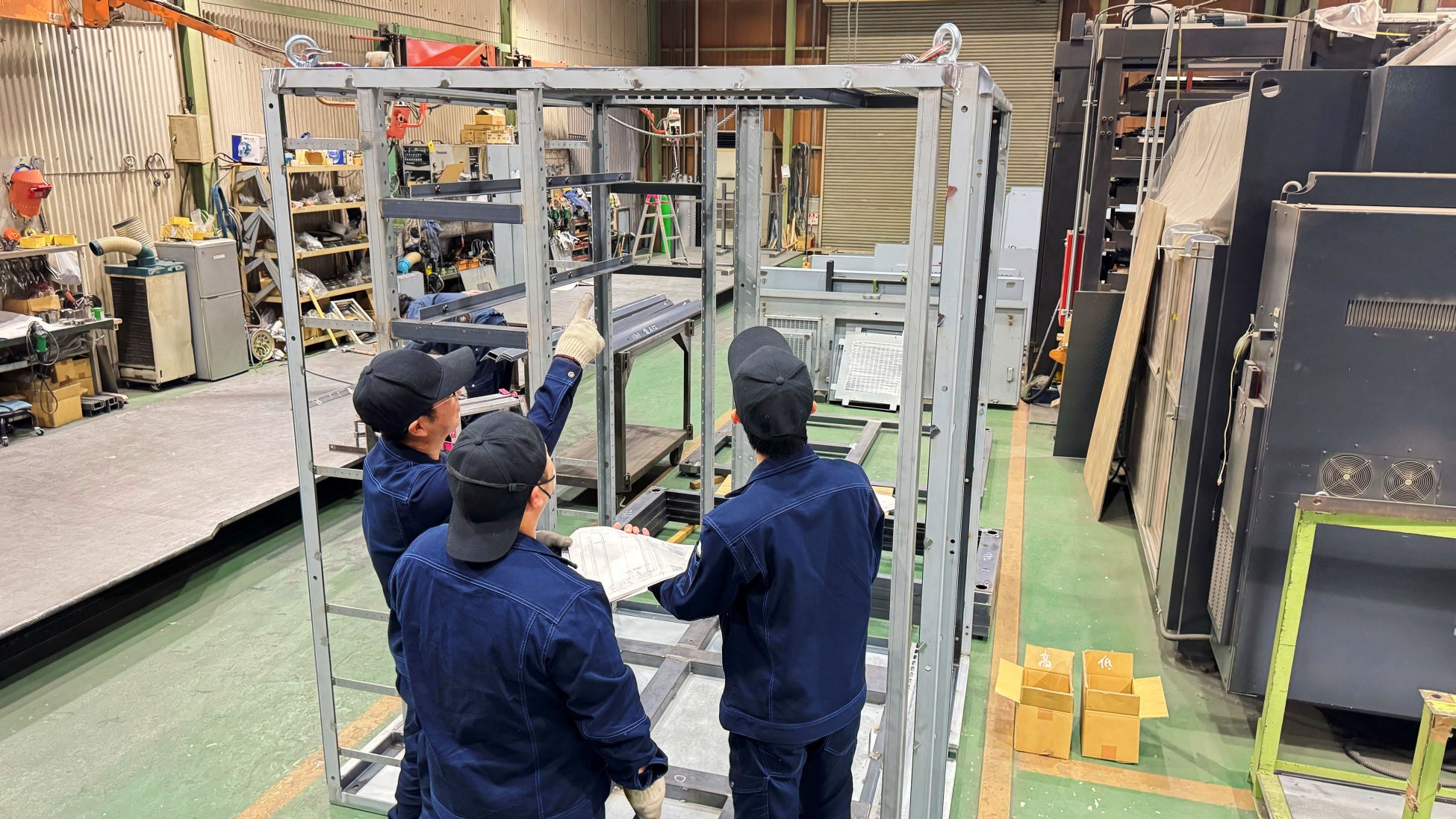 主な製品は受配電盤の筐体で、大型製品の取り扱いが多く、インフラを支えます。
