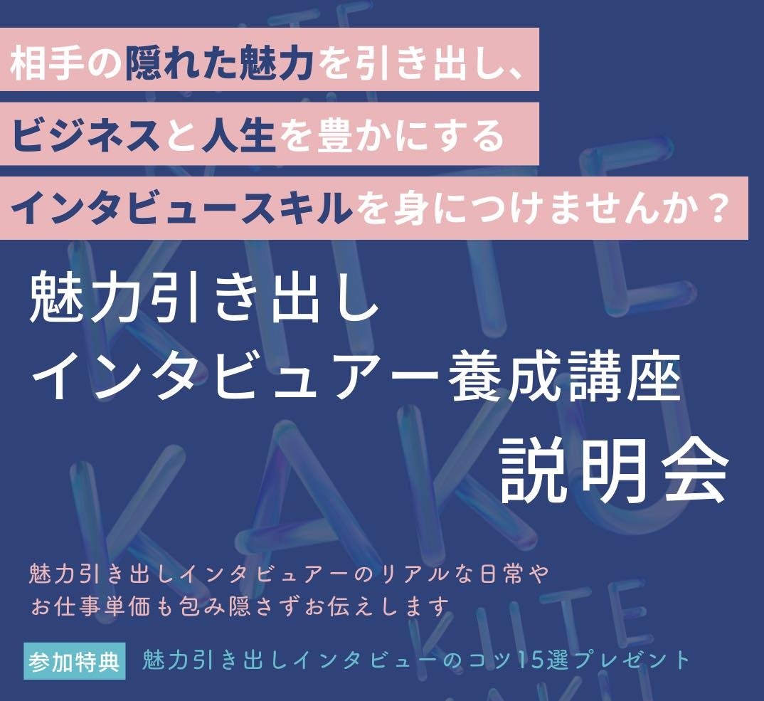 ご興味のある方は、まず「魅力引き出しインタビュアー養成講座説明会」(無料)にご参加ください。