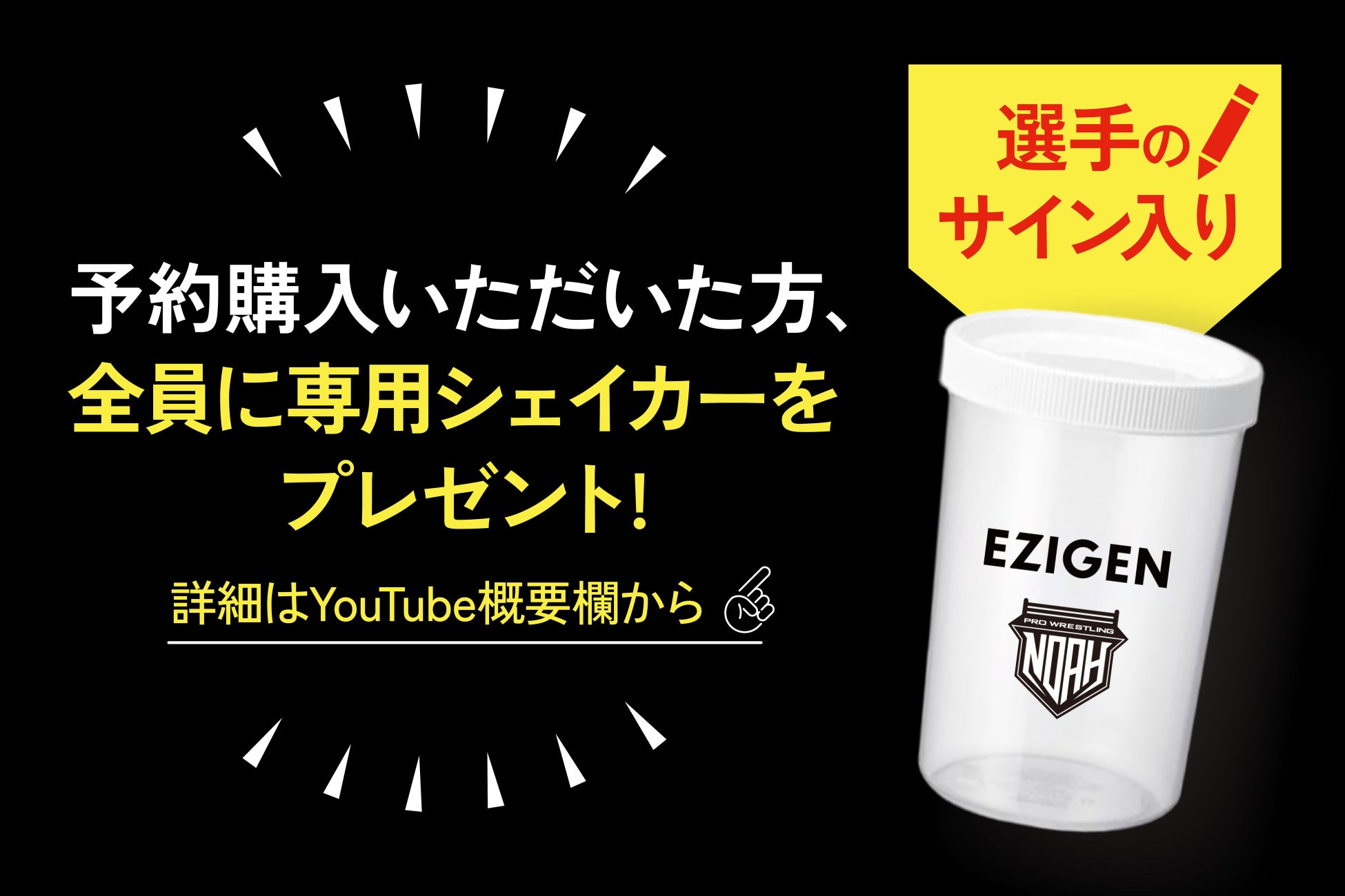 予約購入をしてくれた『全員』に選手のサイン※入り『EZIGEN専用シェイカー』をプレゼント!予約購入特典のお申込みは、2024年2月29日まで。