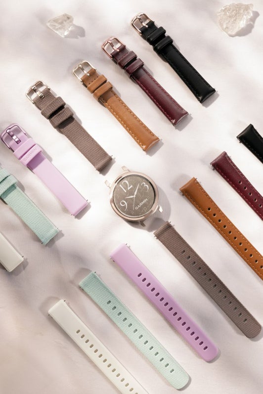 時計サイズは35.4mとGarmin最小で他社でも類を見ないコンパクトサイズ。14mmの細いバンドでアクセサリーのようなフェミニンなシルエット。
