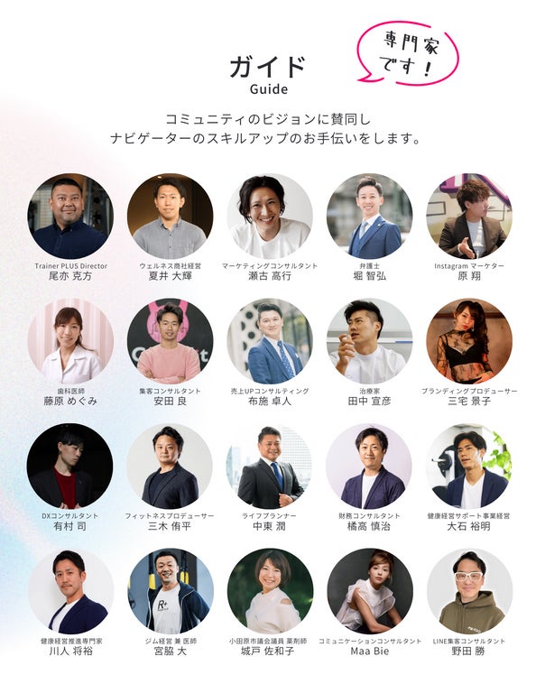 様々なガイドさんがリードし、賛同するナビゲーター(メンバー)さんによってコミュニティを運営していきます。