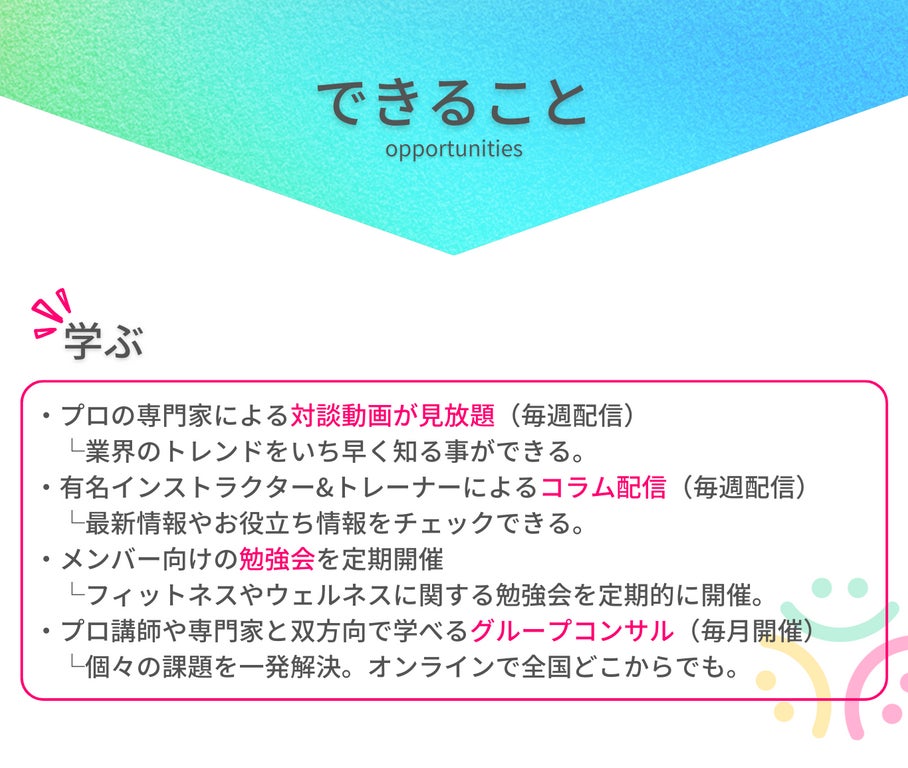 その活動の一つとして、パーソナルトレーナー・フィットネスインストラクターを中心としてオンラインコミュニティを開設し、運用をスタートさせました。