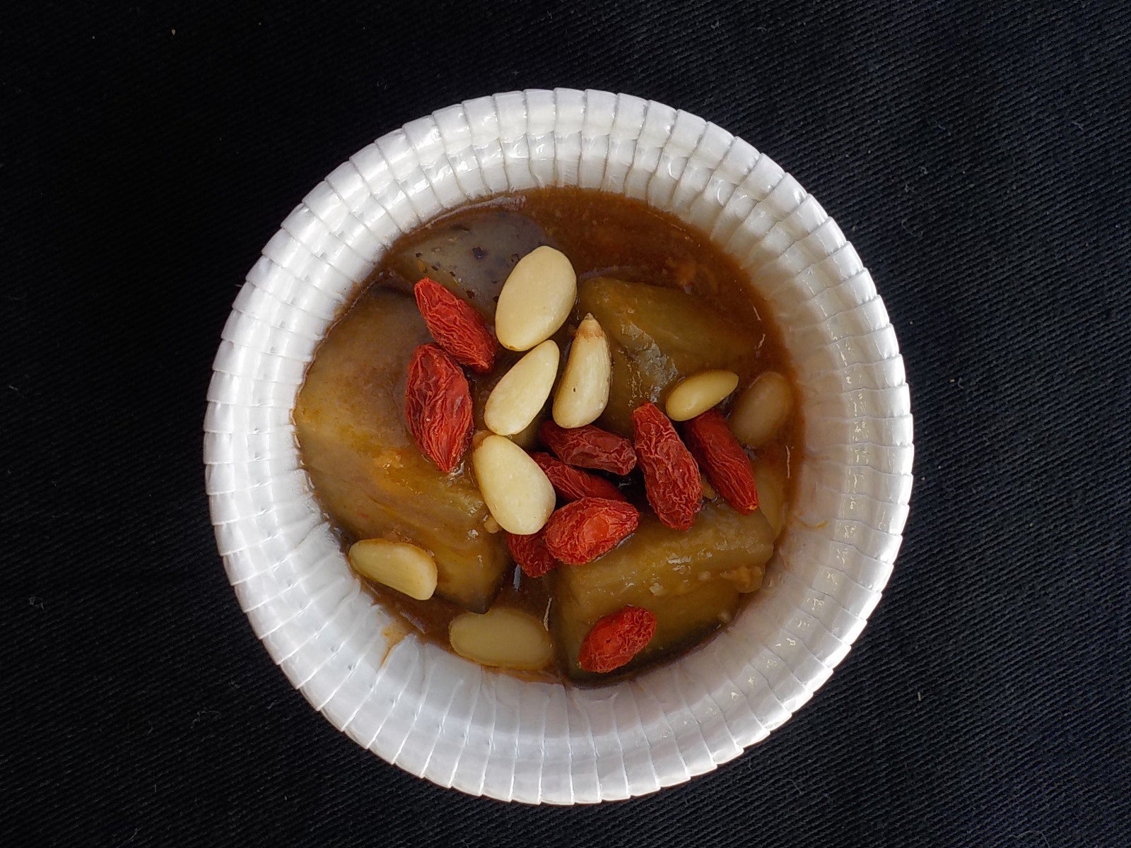 試験品:麻婆茄子+こんにゃく+クコの実+松の実(合計26g)