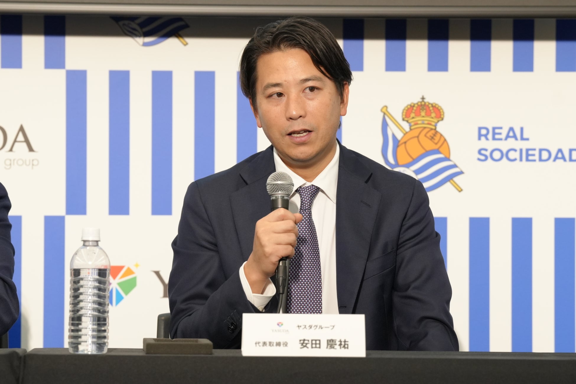 私は15年間レアル・ソシエダにいます。私たちの組織力と築き上げてきたことを使って、色々なことに精一杯取り組んでいきたいと思います。私たちは、サッカーのことはもちろん、人としてどういった成長をしていくべきかについても、メソッドとしてこれまで考えてきました。そういったことも踏まえて取り組んでいきたいと思います。レアル・ソシエダを一言で例えると“家族”です。この日本で家族をもっともっと増やしていこうと思います。日本という地で私たちレアル・ソシエダとヤスダグループは家族となりました。私たちが長年取り組んできたことを日本で表現していくことで、必ず日本の力になると思います。このプロジェクトが長年続いていくことと、成功していくことを私は確信しております。なので、私たちを信用してくれたヤスダグループ・安田さんにとても感謝しています。