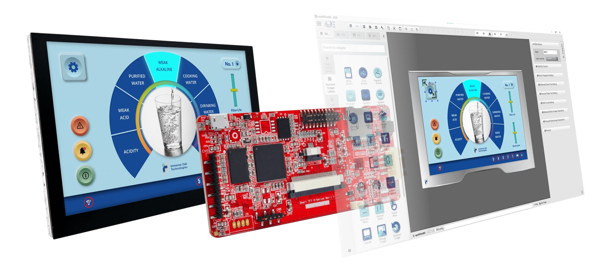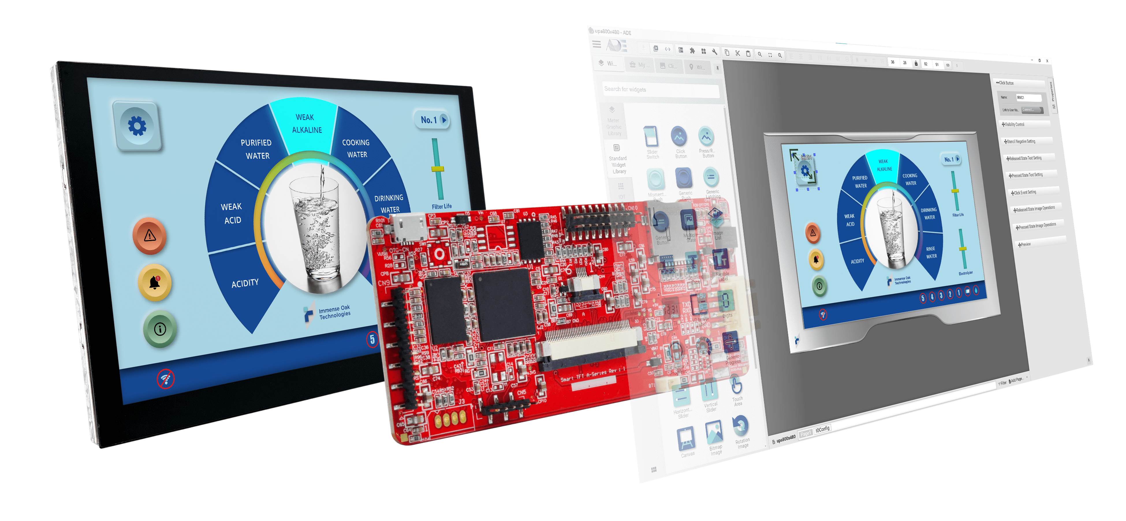 スマートHMIは、タッチパネルモジュール、制御基板(MCU+GPU)、HMI開発プラットフォームADE